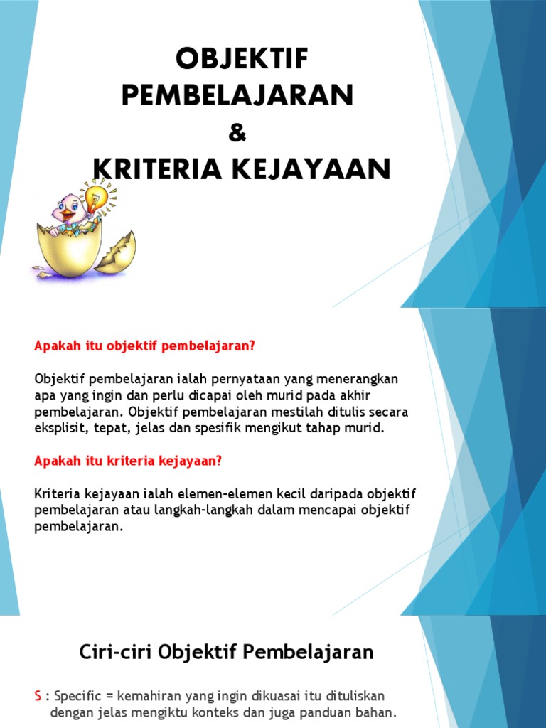 Penulisan Objektif Pembelajaran Dan Kriteria Kejayaan Otosection
